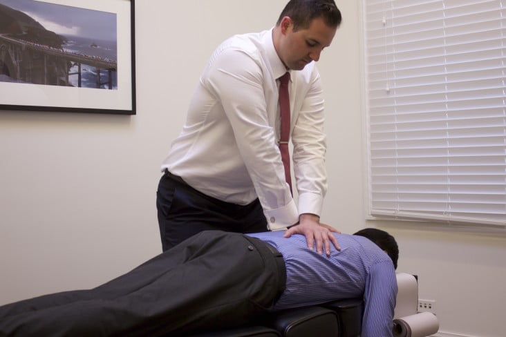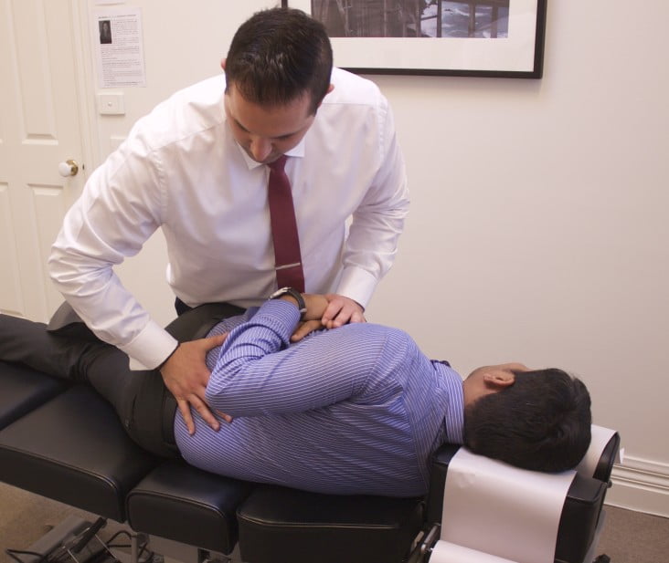 (Dr Peter (Chiropractor) performing a prone diversified adjustment)